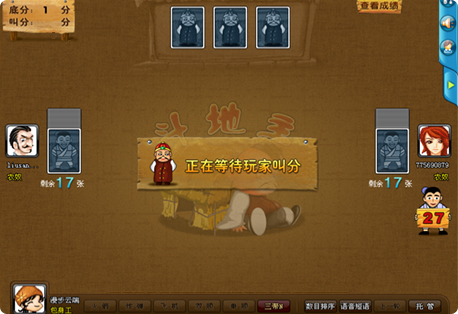 叫牌:每局叫牌的选择权由服务器随机选择一名玩家开始叫地主。
